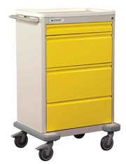 Isolation Cart, Four Drawer, Tall Standard features for the Preferred carts are: built in stabilizing base, combination side shelf/push handle, plastic top. Standard cart color is Autumn White Shell with Yellow Drawers. Other standard and custom colors available. Isolation Cart, 4-Drawer/Tall Shell, Yellow, 43"H x 22"L x 26.5"W, Drawers: (1) 3" Drawer, (3) 9" Drawers, Key Lock. Accessories |