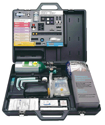Emergency Stat Kit900 is the most extensively equipped Banyan kit. It has 25 different drugs and also contains an oxygen system, Ambu disposable resuscitator and manual suction unit. The oxygen system has a preset flow rate that delivers a minimum of 8 LPM for approximately 30 minutes. Ambu® SPUR® Resuscitator needs no sterilization and there is virtually no risk of cross-contamination. The manual suction unit has a reusable pump handle, and a disposable catheter and container that traps more than 200ml. You now have 23 different drugs, with the option of purchsing two additional ACLS drugs, Weighs 28 lbs. Dimensions: 6 3/8” x 23” x 27”. Complete listing of Stat Kit contents PRICE: US $1067.63